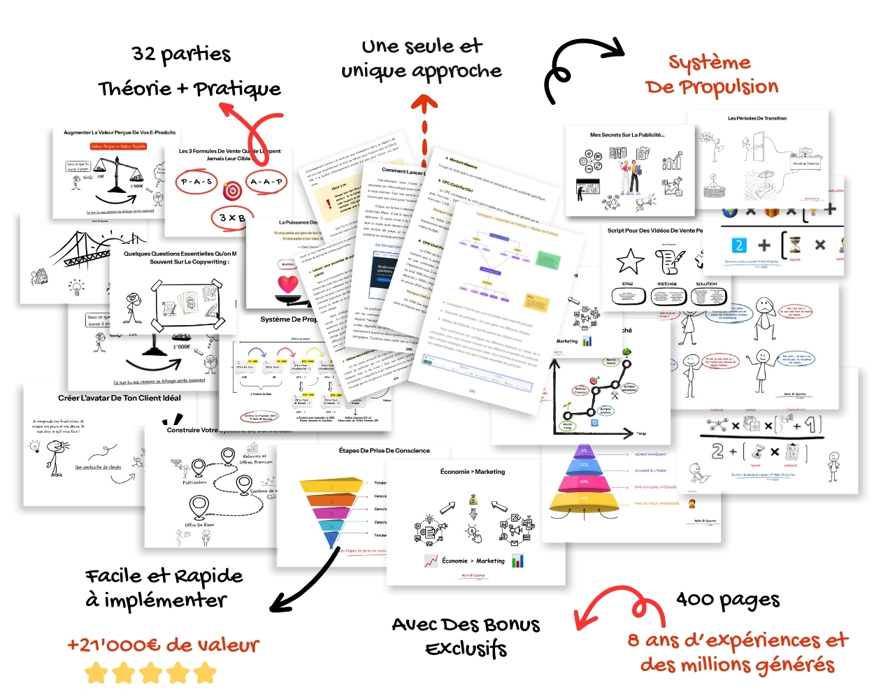 Deux possibilités. (1) Tu cibles mal (on t'aide à ajuster). (2) Tu présentes mal (on te donne les scripts exacts qui marchent). Statistiquement, si tu contactes 100 business qualifiés avec notre système, 5-10 signent. C'est mathématique. Si après 90 jours tu n'as signé personne malgré nos systèmes, on analyse ce qui bloque et on t'aide à corriger. Ou on te rembourse si tu préfères arrêter.